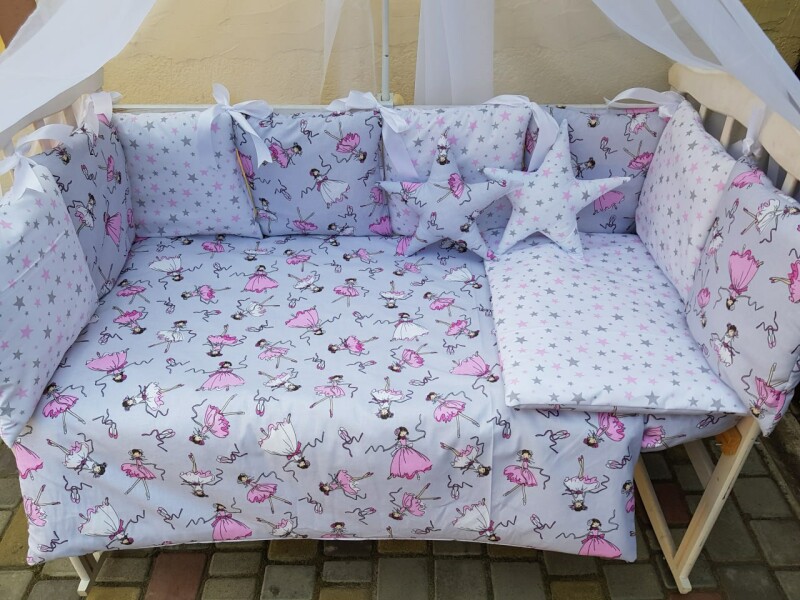 Juno, интернет-магазин детских товаров\\Комплект постільної білизни Elit Bonna в дитяче ліжечко Балерина сіра
