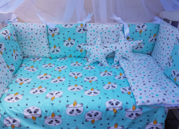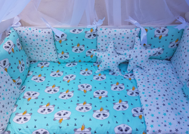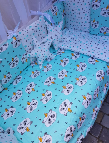 Juno, интернет-магазин детских товаров\\Комплект постільної білизни Bonna Elit в дитяче ліжечко Панда Бірюза
