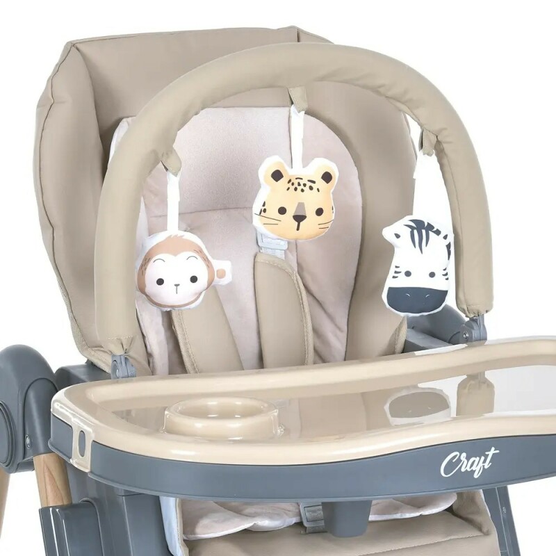 • Стільчик для годування Craft обладнаний 5-точковими ременями, які надійно фіксують дитину. Регульована висота ременів безпеки дозволяє підлаштувати їх під зростання вашого малюка. додаткову безпеку забезпечує захист від сповзання. Пластикова перегородка для ніжок запобігає випаданню дитини.