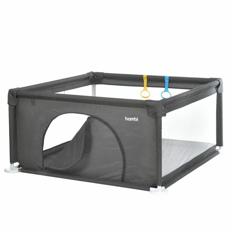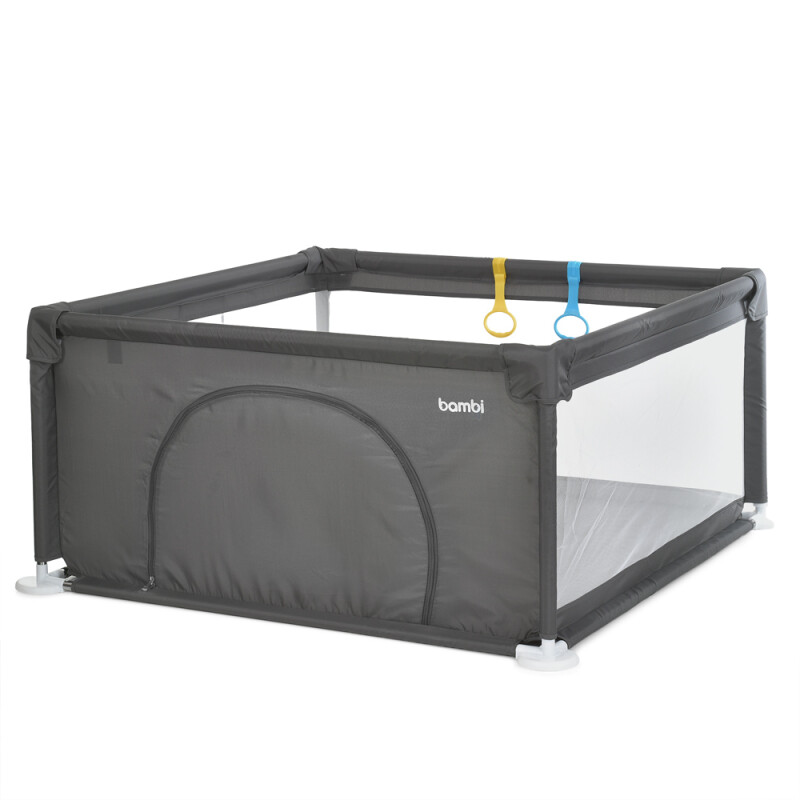 Дитячий манеж MR 1339-BG обладнана дверцятами на блискавці через неї дитина зможе самостійно вибиратися з намету, дана модель має прозорі стінки виконані з сітки, що дозволяє батькам завжди бачити чим у даний момент зайнята їхня дитина.