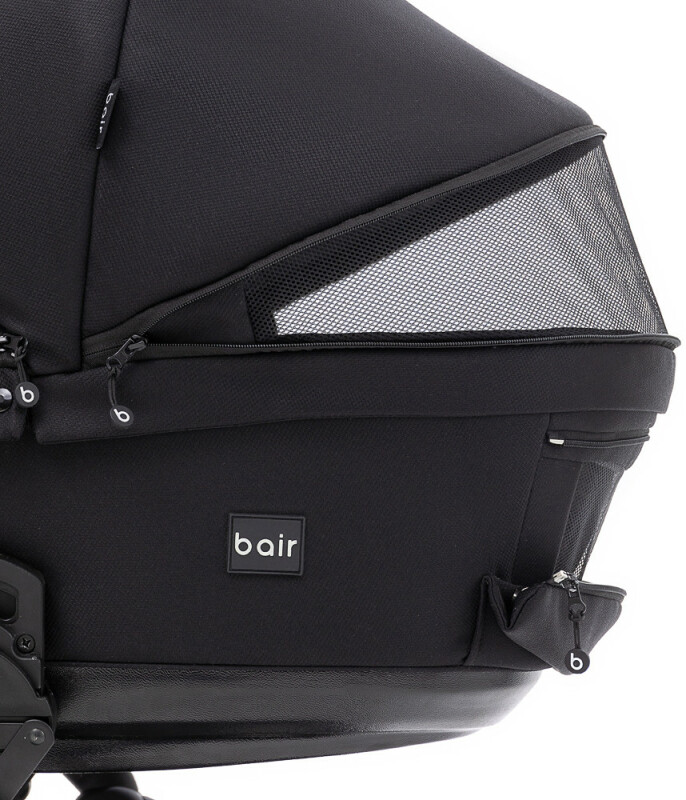 Люльку Bair Kiwi доповнює накидка з блискавками у верхній частині, що суттєво полегшує доступ до дитини за лічені секунди. А відворот із оглядовим віконцем дозволить захистити малюка від опадів або вітру.