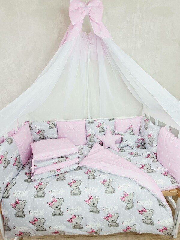 Juno, интернет-магазин детских товаров\\Комплект постільної білизни Elit Bonna в дитяче ліжечко Тедді Пудра