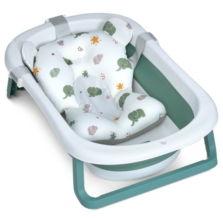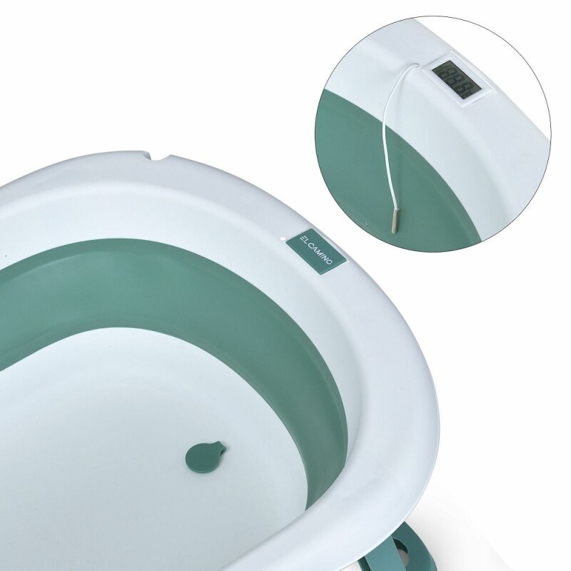 Дитяча складна ванна сподобається всім батькам та малюкам у щоденних процедурах купання. Ванна компактно складається, легка, не займає багато місця, її можна брати з собою в поїздку. Виготовлена з силікону і пластику, має зручний вкладиш для сидіння малюка і оснащена ніжками, що складаються. Є зручний клапан для зливу води. Додатковою функцією є наявність термометра для вимірювання температури води у ванні.