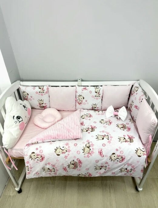 Набір з бортиками на 3 сторони з хмарою Жираф Рожевий