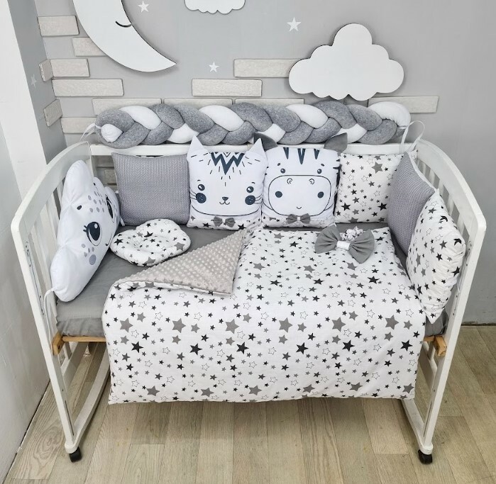 Комплект постільної білизни в дитяче ліжечко Сіро-білий в зірочку NEW