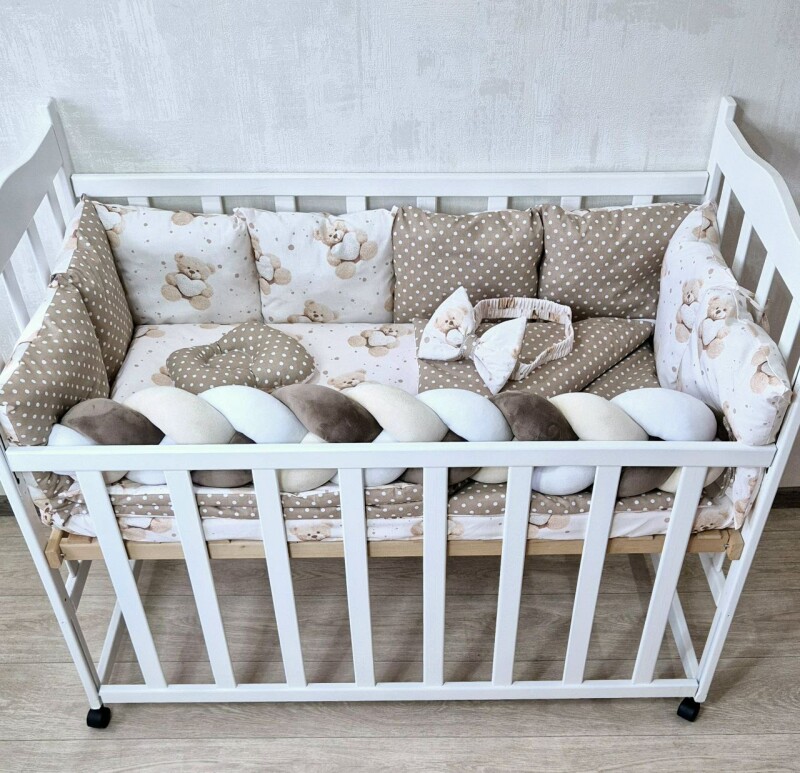 Juno, интернет-магазин детских товаров / Товары / Комплект постільної білизни Bonna Elegance New в дитяче ліжечко Ведмедик з сердечком Шоколад