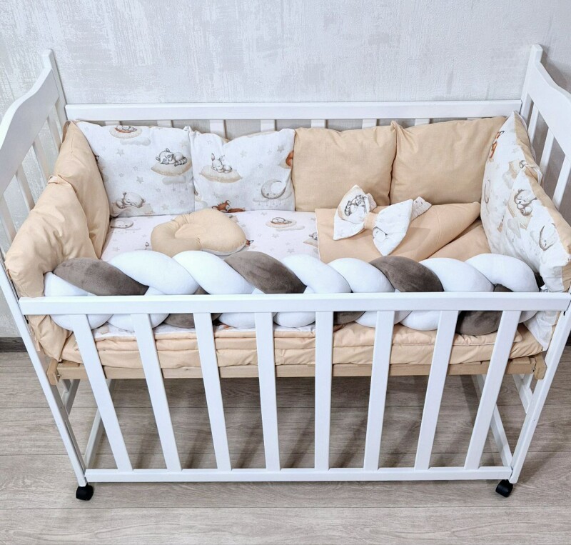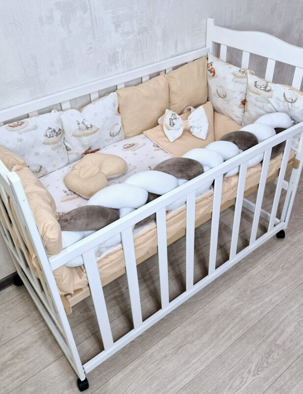 Juno, интернет-магазин детских товаров / Товары / Комплект постільної білизни Bonna Elegance New в дитяче ліжечко Сплячі звірі Золотий Бежевий