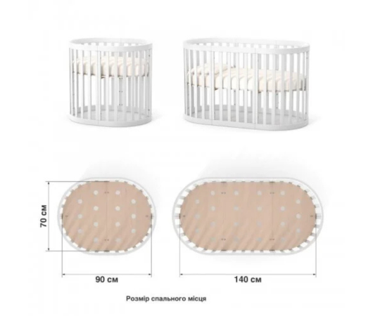 * комплект розширення: комплект елементів, що трансформують ліжечко зі спальним місцем 90*70 см у ліжко зі спальним місцем 140*70 см.