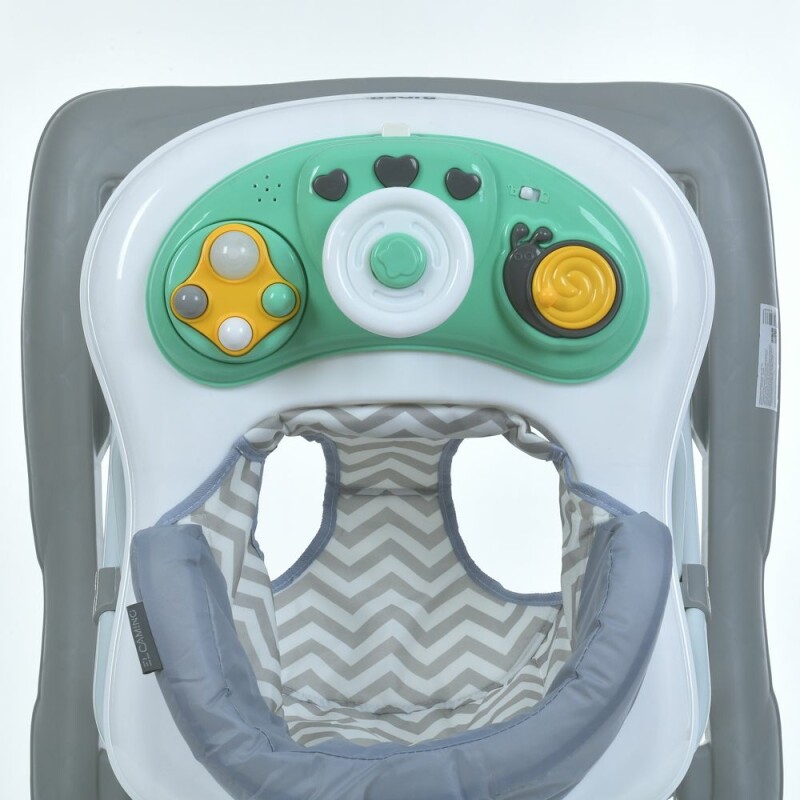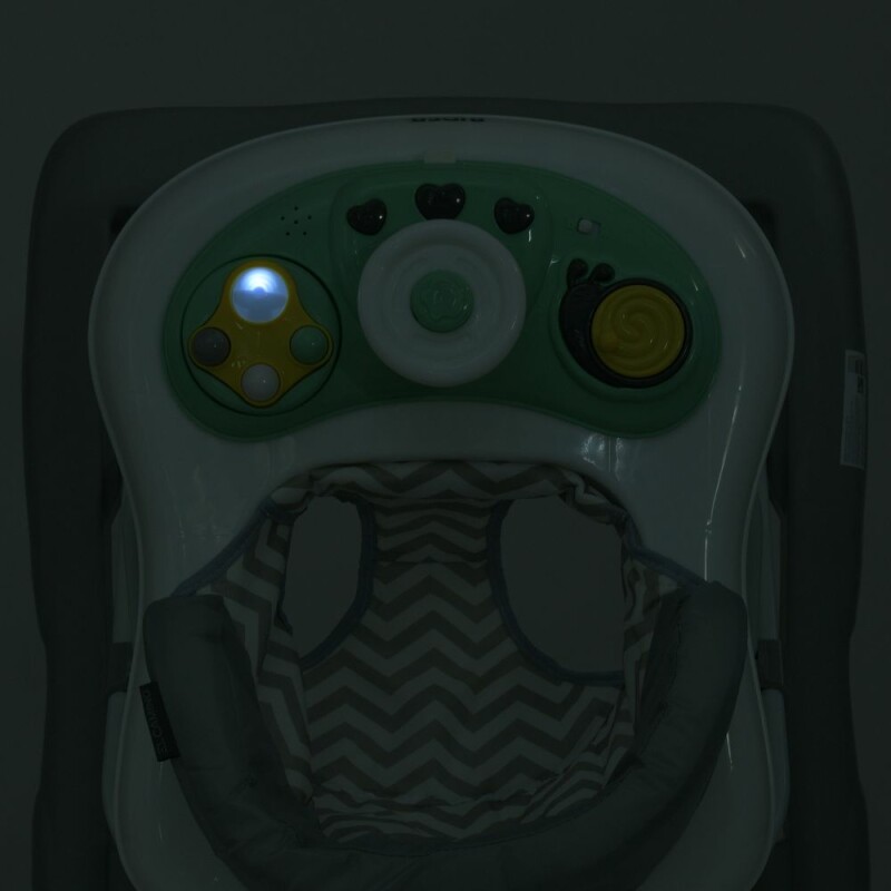 Ігрова панель з музичними та світловими ефектами перетворить кожне пересування у захоплюючу подорож, сповнену радості та нових відкриттів. 8 маневрених коліс подарують свободу руху, а надійний стопор убереже від випадкових ковзань.