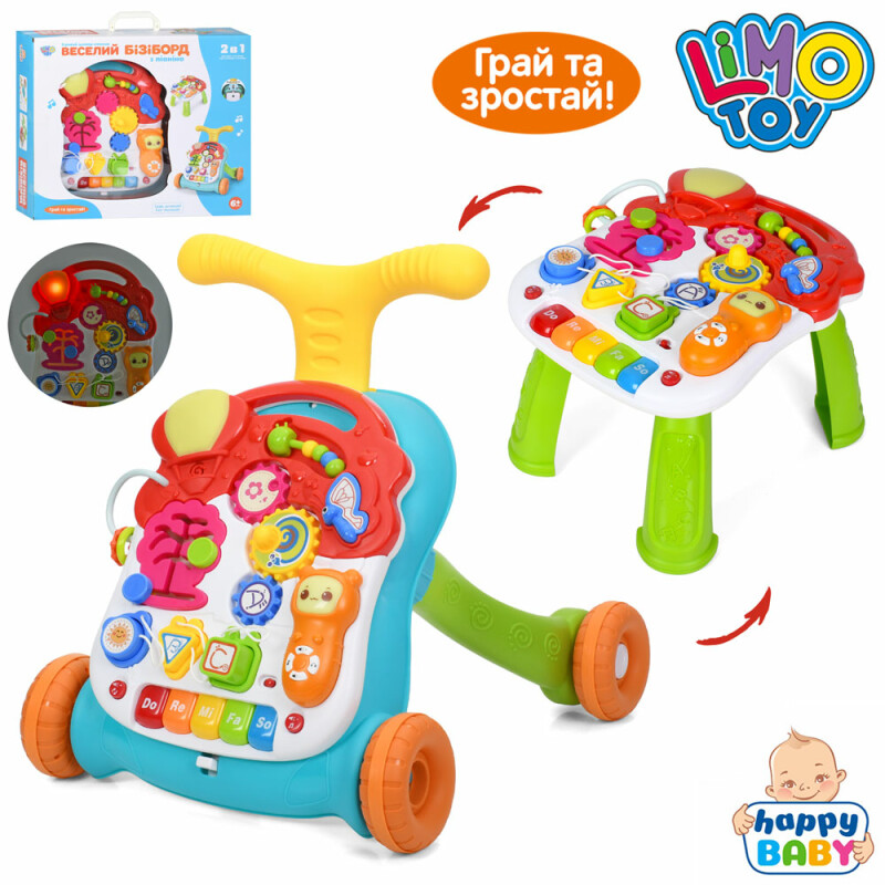 Каталка-ходунки M 5473 AB Limo Toy — це стильний і функціональний помічник для малюків, які тільки починають вчитися ходити. Модель оснащена зручною ручкою для підтримки та стійкими колесами, які забезпечують плавний рух і безпеку під час ходьби. Яскраві кольори та веселі елементи на ігровій панелі не тільки привертають увагу, але й розважають дитину, стимулюючи її сенсорні та моторні навички. Це ідеальний вибір для малюків, які роблять свої перші кроки у світі відкриттів і ігор!