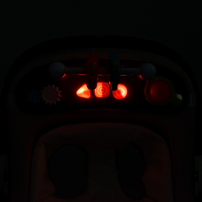 Наявна музика та світло. Ігрову панель за потребою можна зняти, працює від батарейок. Ходунки мають шість коліс (пластик+силікон), передні 5 см/задні 11,5 см.