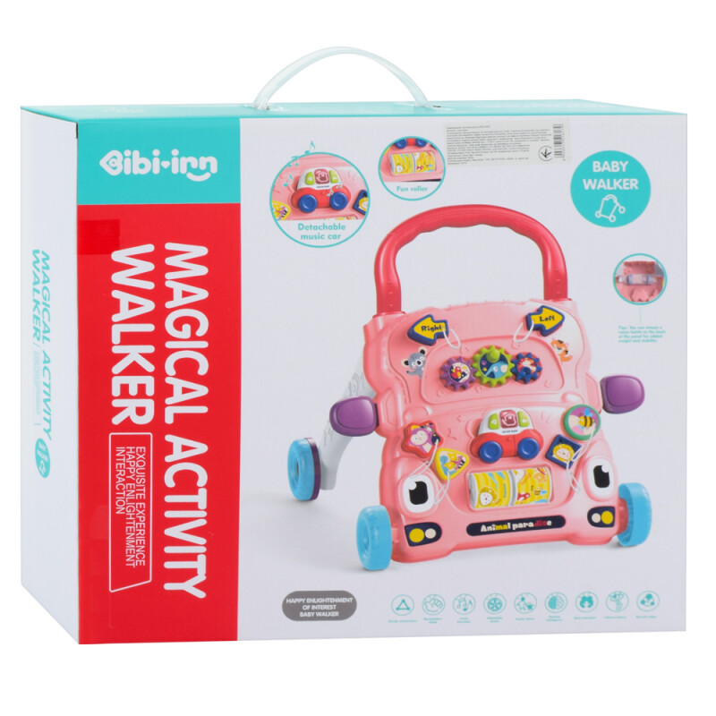 Модель оснащена багатофункціональною панеллю з рухомими елементами, кнопками, шестернями та обертовими деталями. Світлові та звукові ефекти роблять гру ще цікавішою та стимулюють розвиток слуху, уваги і координації.