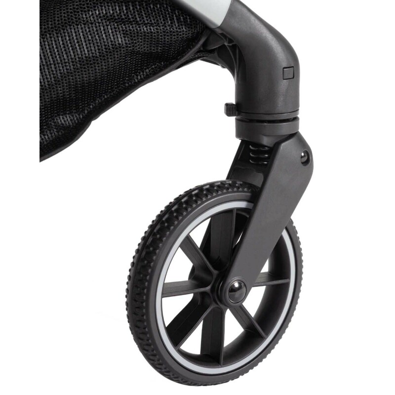 Поворотні передні колеса з можливістю фіксації забезпечують відмінну керованість на різних типах поверхні. Амортизаційна система згладжує нерівності дороги, забезпечуючи плавний хід.